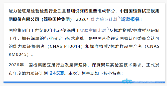 我们的服务(能力验证篇) | 2026年国检集团能力验证计划245项,诚邀报名~